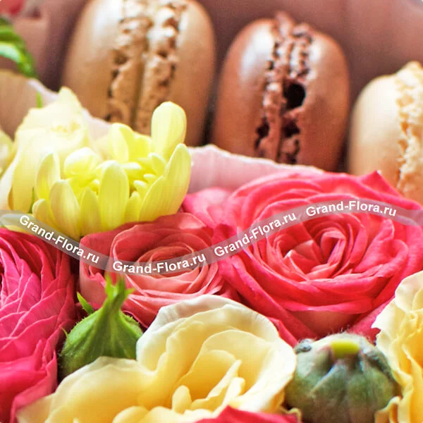 Коробочка любви + сертификат - коробка в виде сердца с розами и макарунс + сертификат